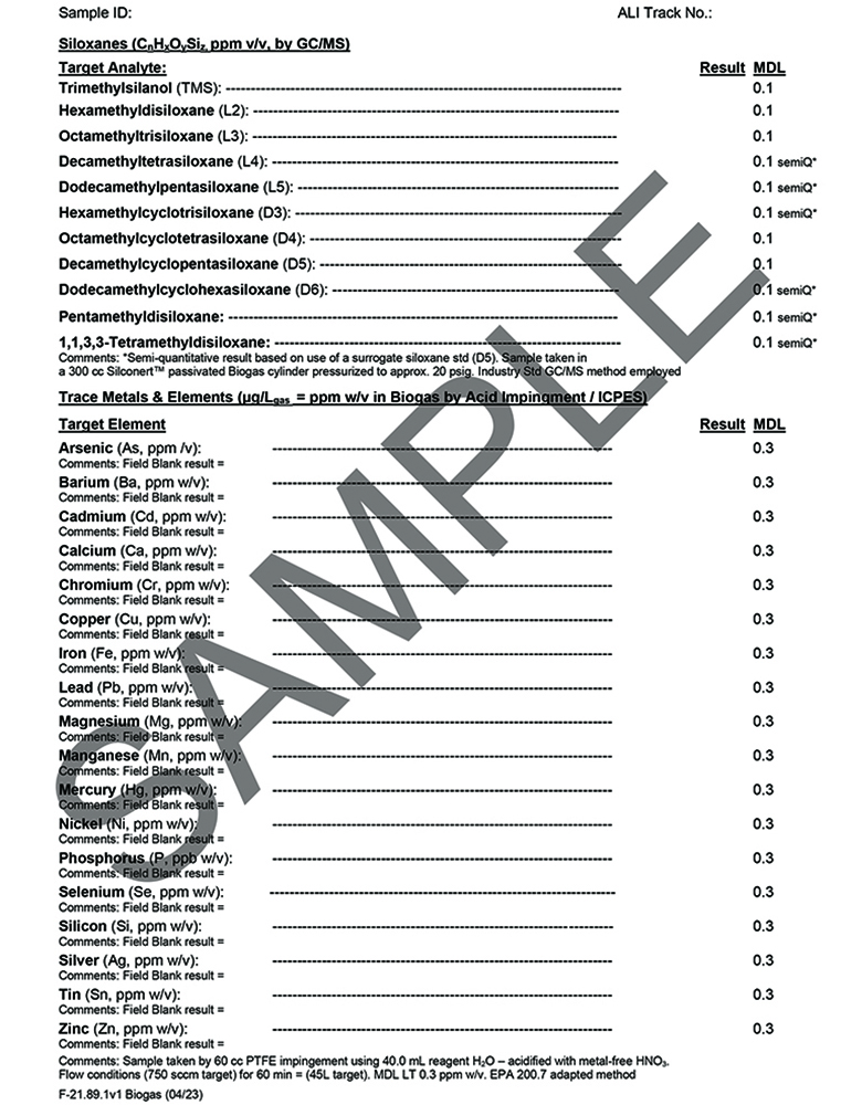 Biogas Characterization Program