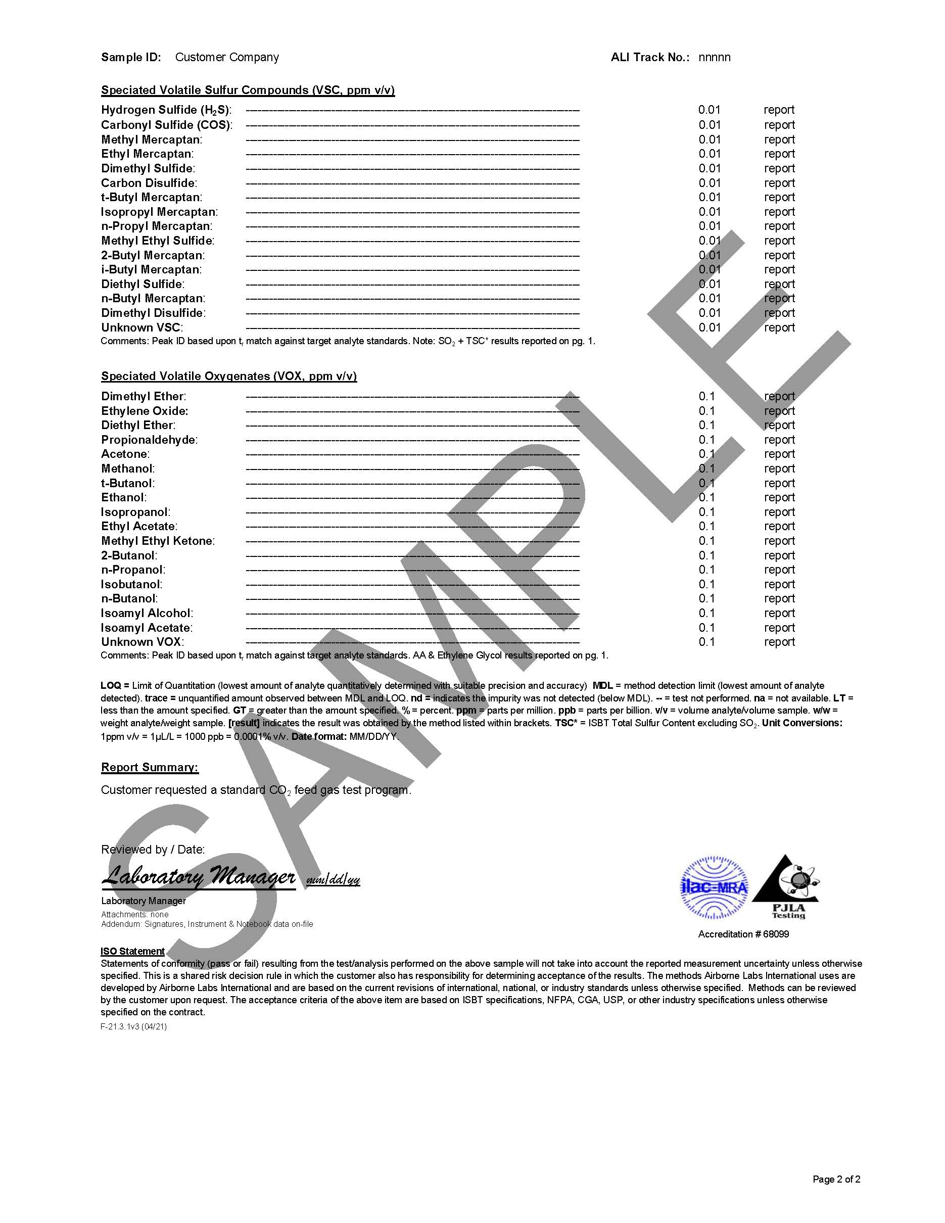 This test program is used to routinely characterize a targeted list of impurities in CO2 Feed Gas sources.